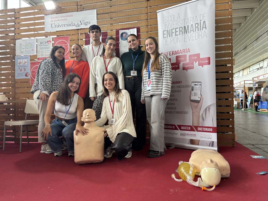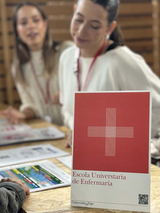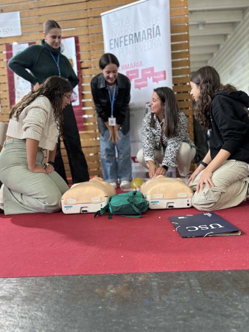 A Escola Universitaria de Enfermería contou cun espazo propio onde as persoas visitantes tiveron a oportunidade de coñecer de cerca a súa proposta formativa e participar de forma activa. O estudantado do centro proporcionoulles información detallada sobre os estudos, as saídas profesionais e académicas, os programas de saúde comunitaria, así como sobre formación en primeiros auxilios para emerxencias comúns, reanimación cardiopulmonar básica, vendaxes e diversos obradoiros sobre saúde mental, entre outras actividades.